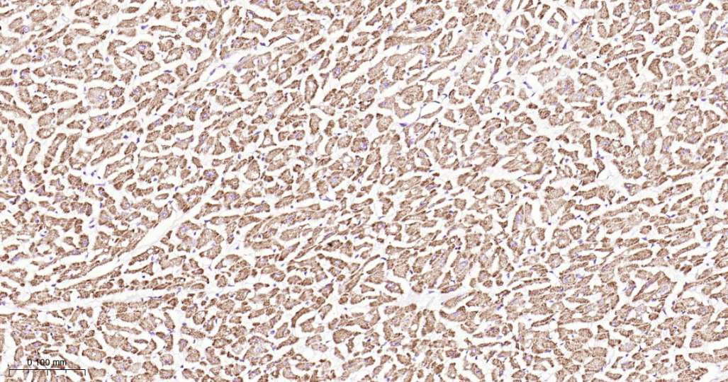 Immunohistochemical analysis of paraffin embedded Human heart tissue slide using IHC0634H (Human NDUFS3 Kit).