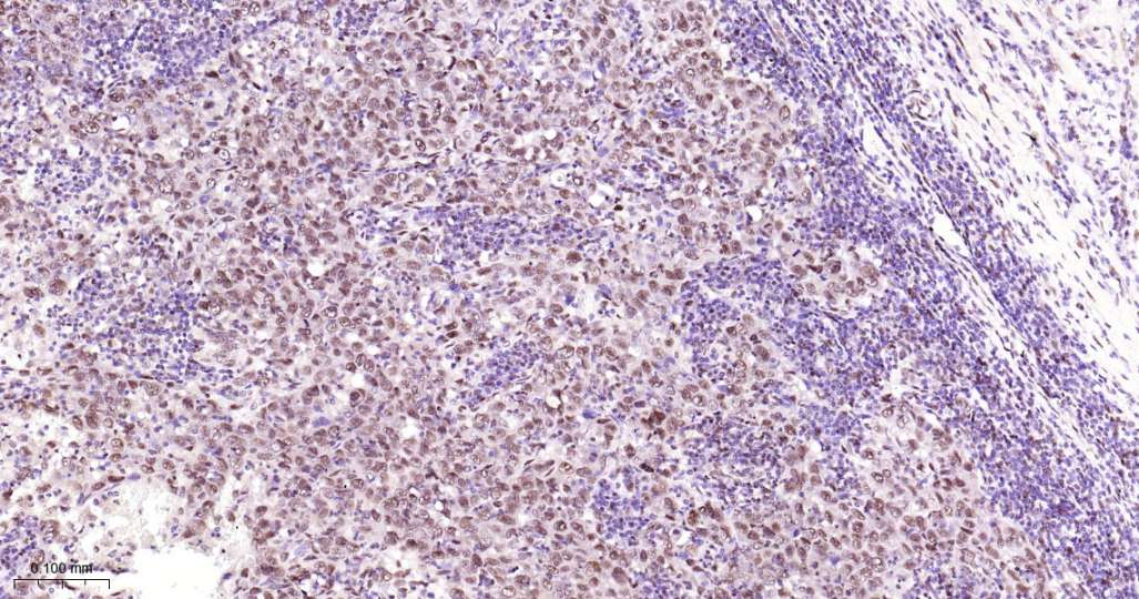 Immunohistochemical analysis of paraffin embedded Human breast cancer tissue slide using IHC0642H (Human p53BP1 Kit).