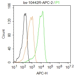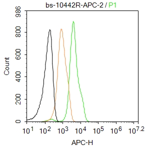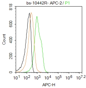 Primary Antibody (green line): Rabbit Anti-Caspase-1 p20 antibody (bs-10442R-APC)