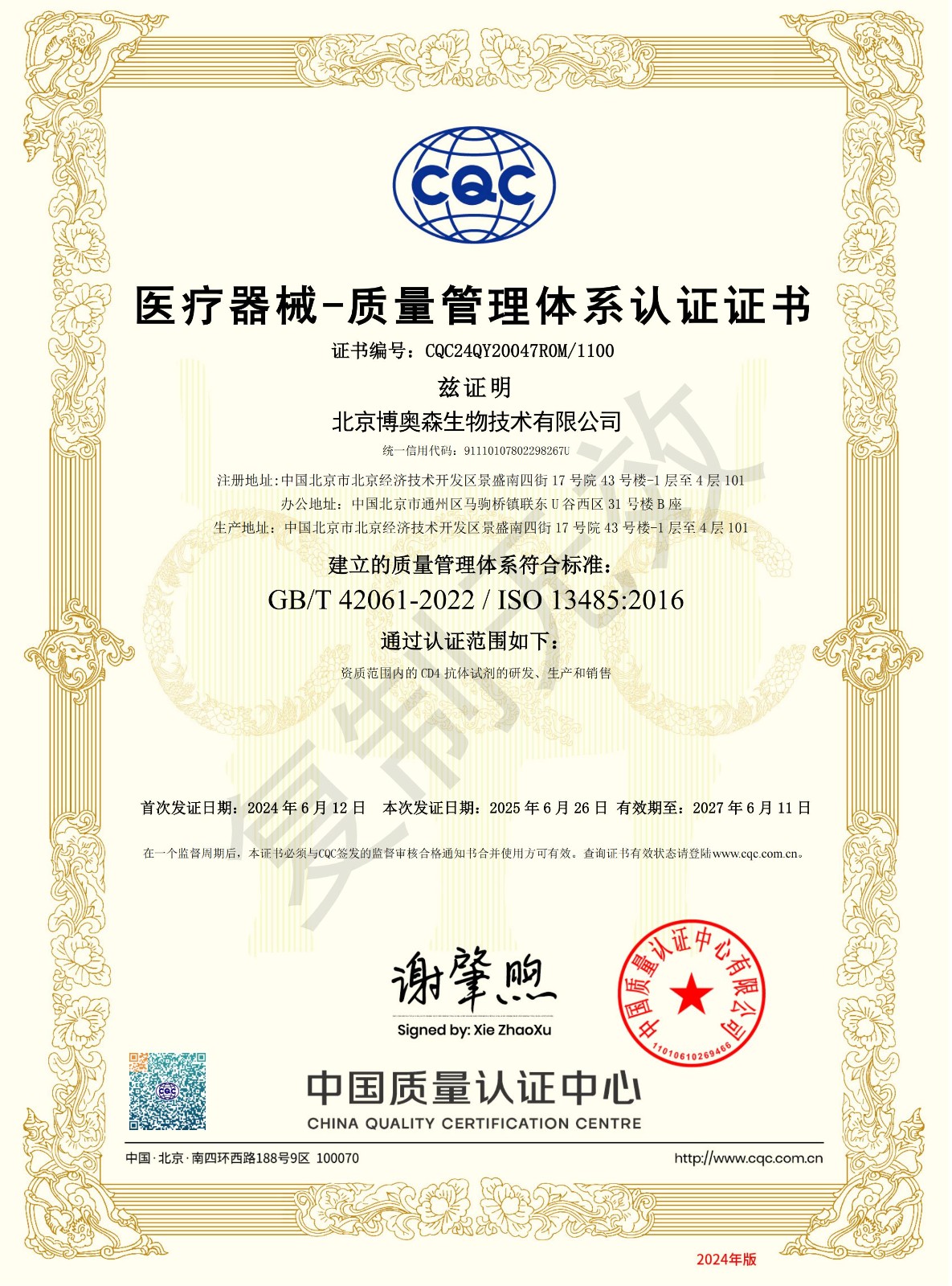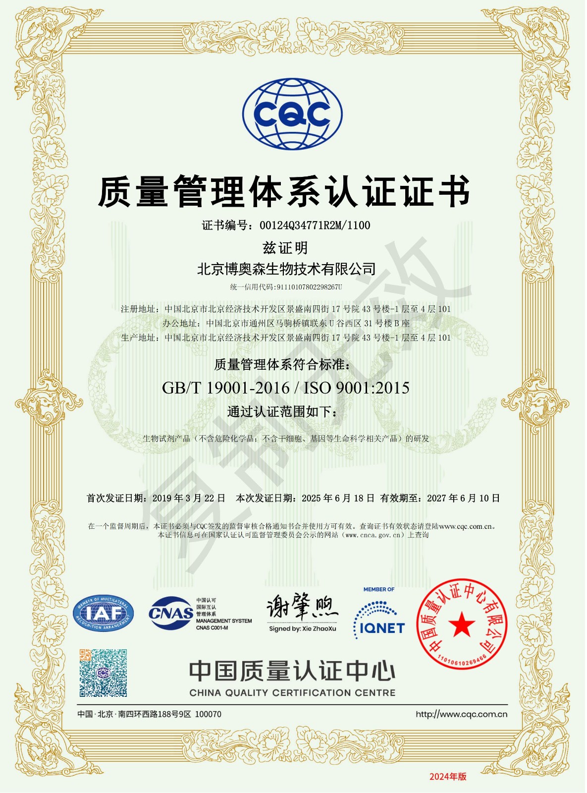 近日,博奧森生物成功通過ISO13485醫(yī)療器械質(zhì)量管理體系與ISO9001質(zhì)量管理體系雙認(rèn)證的再次審核!此次雙認(rèn)證的順利通過,不僅是對(duì)博奧森在質(zhì)量管控、技術(shù)研發(fā)及生產(chǎn)制造領(lǐng)域卓越實(shí)力的權(quán)威認(rèn)可,更是對(duì)公司長(zhǎng)期堅(jiān)持國(guó)際高標(biāo)準(zhǔn)、嚴(yán)要求的充分肯定。這標(biāo)志著博奧森在科研產(chǎn)品和體外診斷試劑的研發(fā)生產(chǎn)、全流程質(zhì)量管控、檢測(cè)服務(wù)標(biāo)準(zhǔn)化體系建設(shè)及客戶滿意度提升等方面,均已達(dá)到國(guó)際領(lǐng)先水平!