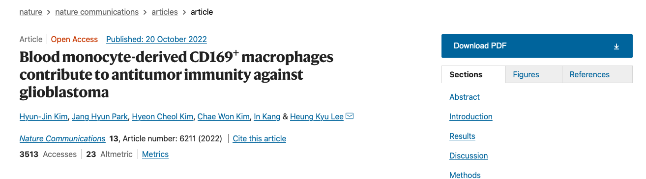 摘要:Infiltrating tumor-associated macrophages (TAM) are known to impede immunotherapy against glioblastoma (GBM), however, TAMs are heterogeneous, and there are no clear markers to distinguish immunosuppressive and potentially immune-activating populations. Here we identify a subset of CD169+ macrophages promoting an anti-tumoral microenvironment in GBM. Using single-cell transcriptome analysis, we find that CD169+ macrophages in human and mouse gliomas produce pro-inflammatory chemokines, leading to the accumulation of T cells and NK cells. CD169 expression on macrophages facilitates phagocytosis of apoptotic glioma cells and hence tumor-specific T cell responses. Depletion of CD169+ macrophages leads to functionally impaired antitumor lymphocytes and poorer survival of glioma-bearing mice. We show that NK-cell-derived IFN-γ is critical for the accumulation of blood monocyte-derived CD169+ macrophages in gliomas. Our work thus identifies a well-distinguished TAM subset promoting antitumor immunity against GBM, and identifies key factors that might shift the balance from immunosuppressive to anti-tumor TAM.