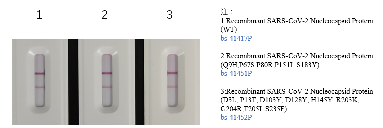 01. 新冠野生株與具有多位點突變株N蛋白在膠體金檢測平臺上的驗證結(jié)果(膠體金平臺:Cat. bsm-41511R & bsm-41481M)