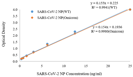 圖3. 新冠野生株和Omicron變異株N蛋白的ELISA標(biāo)準(zhǔn)曲線