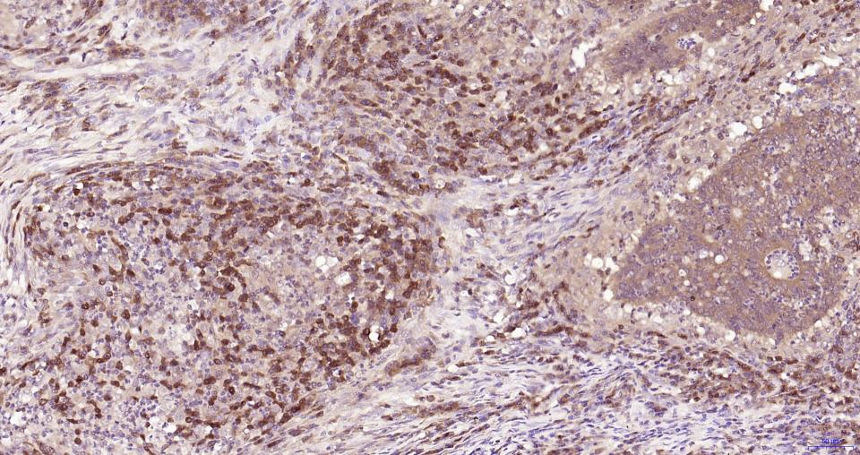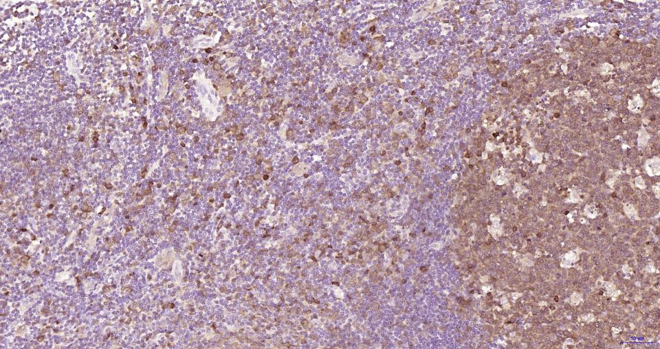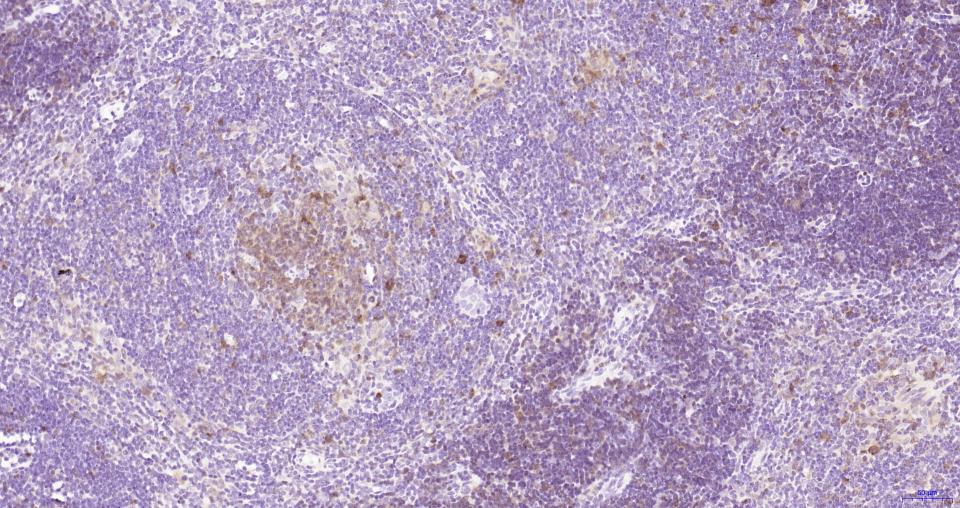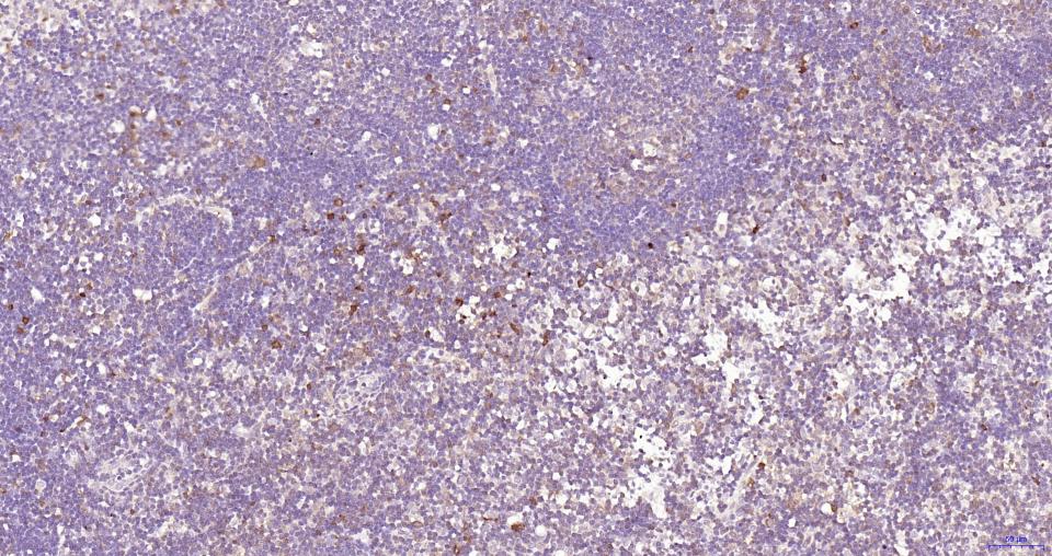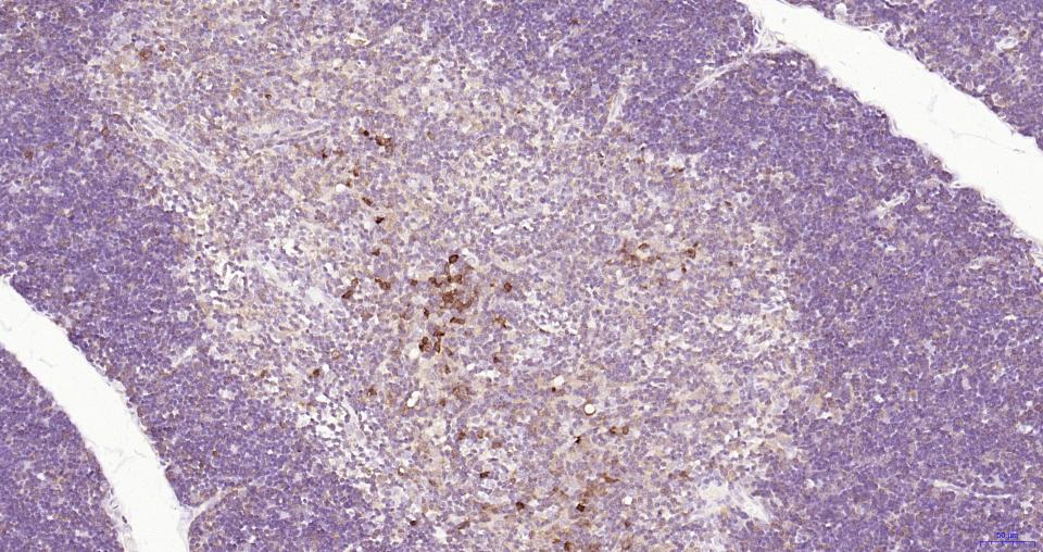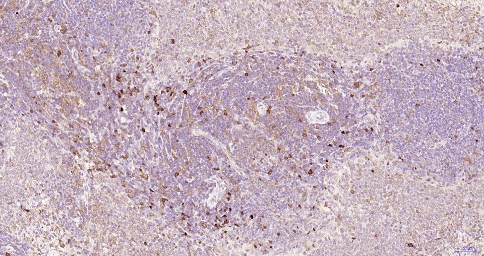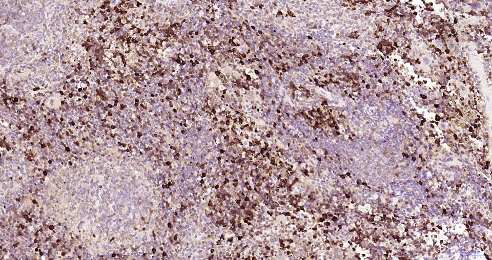 Paraformaldehyde-fixed, paraffin embedded Rat Lymph; Antigen retrieval by boiling in sodium citrate buffer (pH6.0) for 15 min; Antibody incubation with Cleaved-Caspase 3 p17 Monoclonal Antibody, Unconjugated(bsm-61090R) at 1:100 overnight at 4°C, followed by conjugation to the SP Kit (Rabbit, SP-0023) and DAB (C-0010) staining.