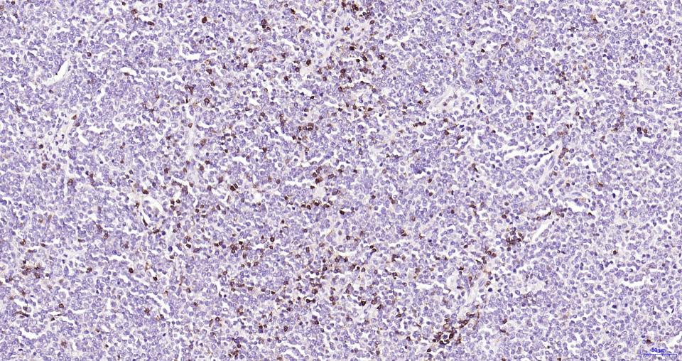 Paraformaldehyde-fixed, paraffin embedded Human Lymph; Antigen retrieval by boiling in sodium citrate buffer (pH6.0) for 15 min; Antibody incubation with CD5 Monoclonal Antibody, Unconjugated(bsm-61094R) at 1:200 overnight at 4°C, followed by conjugation to the SP Kit (Rabbit, SP-0023) and DAB (C-0010) staining.