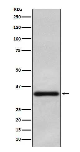 Western blot analysis of Human oligodendroglioma lysate. Using OLIG2 (bsm-61115R) monoclonal antibody at 1:1000 dilution and 4°C overnight incubation. Followed by conjugated secondary antibody incubation at r.t. for 60 min.
