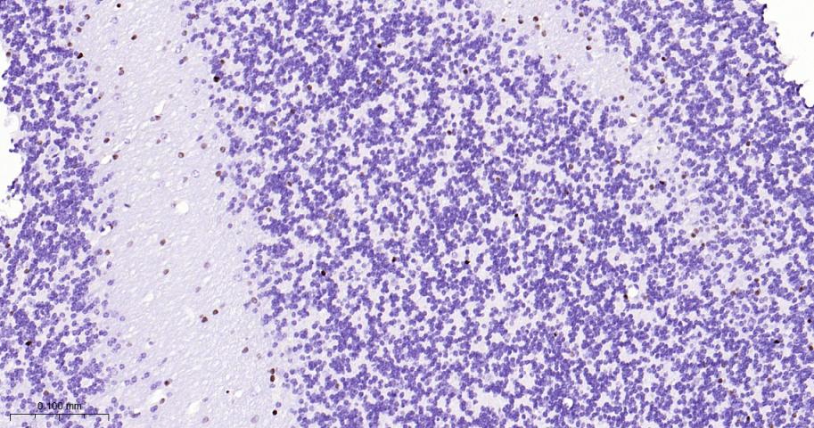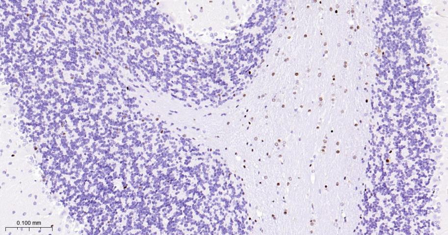 Paraformaldehyde-fixed, paraffin embedded Rat Cerebellum; Antigen retrieval by boiling in sodium citrate buffer (pH6.0) for 15 min; Antibody incubation with OLIG2 Monoclonal Antibody, Unconjugated(bsm-61115R) at 1:200 overnight at 4°C, followed by conjugation to the bs-0295G-HRP and DAB (C-0010) staining.