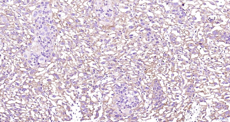 Paraformaldehyde-fixed, paraffin embedded Mouse placenta; Antigen retrieval by boiling in sodium citrate buffer (pH6.0) for 15 min; Antibody incubation with Adiponectin  Monoclonal Antibody, Unconjugated (bsm-61121R) at 1:200 overnight at 4°C, followed by conjugation to the bs-0295G-HRP and DAB (C-0010) staining.