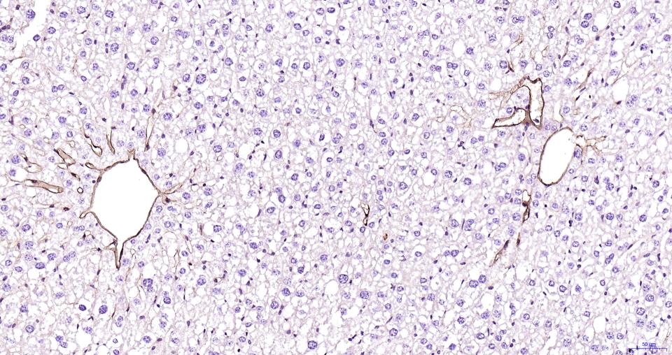 Paraformaldehyde-fixed, paraffin embedded Mouse liver; Antigen retrieval by boiling in sodium citrate buffer (pH6.0) for 15 min; Antibody incubation with Adiponectin  Monoclonal Antibody, Unconjugated (bsm-61121R) at 1:200 overnight at 4°C, followed by conjugation to the bs-0295G-HRP and DAB (C-0010) staining.