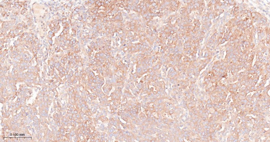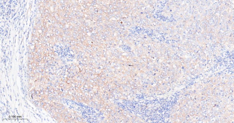 Paraformaldehyde-fixed, paraffin embedded Human Rhabdomyosarcoma; Antigen retrieval by boiling in sodium citrate buffer (pH6.0) for 15 min; Antibody incubation with API2/BIRC3 Monoclonal Antibody, Unconjugated(bsm-61124R) at 1:100 overnight at 4°C, followed by conjugation to the bs-0295G-HRP and DAB (C-0010) staining.