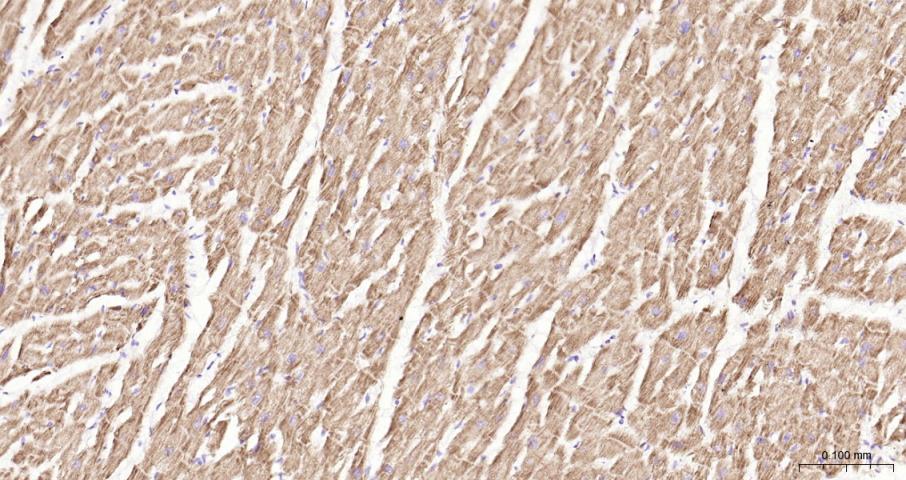 Paraformaldehyde-fixed, paraffin embedded Human Heart; Antigen retrieval by boiling in sodium citrate buffer (pH6.0) for 15 min; Antibody incubation with BMP4 Monoclonal Antibody, Unconjugated(bsm-61132R) at 1:200 overnight at 4°C, followed by conjugation to the bs-0295G-HRP and DAB (C-0010) staining.
