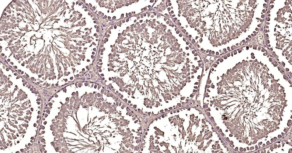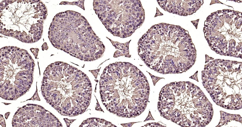 Paraformaldehyde-fixed, paraffin embedded Mouse Testicles; Antigen retrieval by boiling in sodium citrate buffer (pH6.0) for 15 min; Antibody incubation with Calmodulin 1 Monoclonal Antibody, Unconjugated(bsm-61141R) at 1:200 overnight at 4°C, followed by conjugation to the SP Kit (Rabbit, SP-0023)and DAB (C-0010) staining.