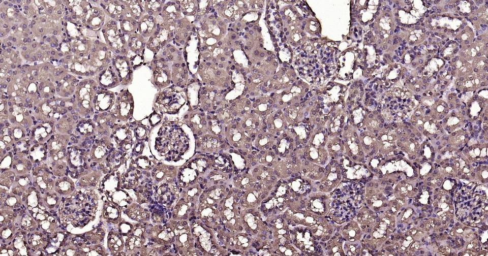 Paraformaldehyde-fixed, paraffin embedded Rat Kidney; Antigen retrieval by boiling in sodium citrate buffer (pH6.0) for 15 min; Antibody incubation with Calmodulin 1 Monoclonal Antibody, Unconjugated(bsm-61141R) at 1:200 overnight at 4°C, followed by conjugation to the SP Kit (Rabbit, SP-0023)and DAB (C-0010) staining.