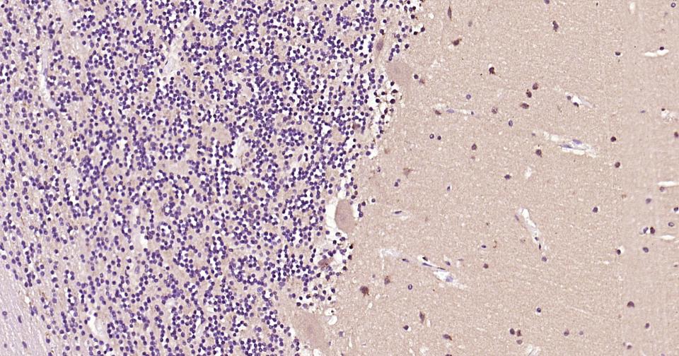 Paraformaldehyde-fixed, paraffin embedded Human Cerebellum; Antigen retrieval by boiling in sodium citrate buffer (pH6.0) for 15 min; Antibody incubation with Musashi 1? Monoclonal Antibody, Unconjugated(bsm-61142R) at 1:200 overnight at 4°C, followed by conjugation to the bs-0295G-HRP and DAB (C-0010) staining.