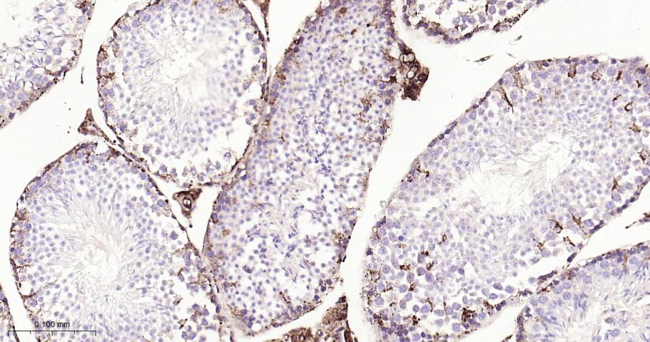 Paraformaldehyde-fixed, paraffin embedded Mouse Testicles; Antigen retrieval by boiling in sodium citrate buffer (pH6.0) for 15 min; Antibody incubation with Cathepsin D Monoclonal Antibody, Unconjugated(bsm-61164R) at 1:200 overnight at 4°C, followed by conjugation to the bs-0295G-HRP and DAB (C-0010) staining.