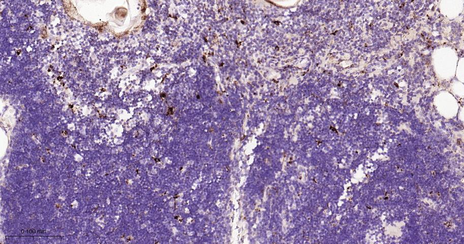 Paraformaldehyde-fixed, paraffin embedded HumanThymus; Antigen retrieval by boiling in sodium citrate buffer (pH6.0) for 15 min; Antibody incubation with Cathepsin D Monoclonal Antibody, Unconjugated(bsm-61164R) at 1:200 overnight at 4°C, followed by conjugation to the bs-0295G-HRP and DAB (C-0010) staining.