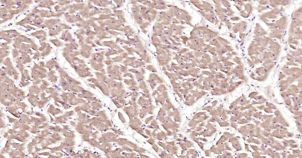 Paraformaldehyde-fixed, paraffin embedded Human Heart; Antigen retrieval by boiling in sodium citrate buffer (pH6.0) for 15 min; Antibody incubation with ASK1 Monoclonal Antibody, Unconjugated(bsm-61166R) at 1:200 overnight at 4°C, followed by conjugation to the SP Kit (Rabbit, SP-0023)and DAB (C-0010) staining.