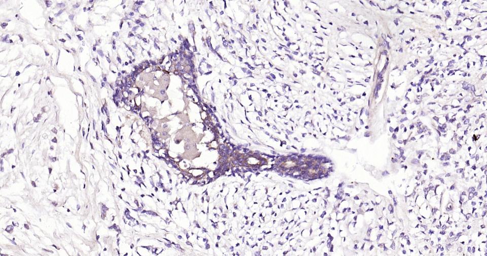 Paraformaldehyde-fixed, paraffin embedded Human Breast Cancer; Antigen retrieval by boiling in sodium citrate buffer (pH6.0) for 15 min; Antibody incubation with ASK1 Monoclonal Antibody, Unconjugated(bsm-61166R) at 1:200 overnight at 4°C, followed by conjugation to the SP Kit (Rabbit, SP-0023)and DAB (C-0010) staining.