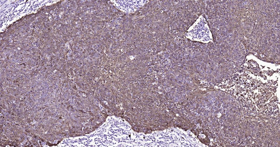 Paraformaldehyde-fixed, paraffin embedded Human Skin Cancer; Antigen retrieval by boiling in sodium citrate buffer (pH6.0) for 15 min; Antibody incubation with S100A8 Monoclonal Antibody, Unconjugated(bsm-61167R) at 1:200 overnight at 4°C, followed by conjugation to the SP Kit (Rabbit, SP-0023)and DAB (C-0010) staining.
