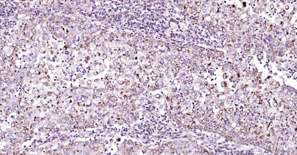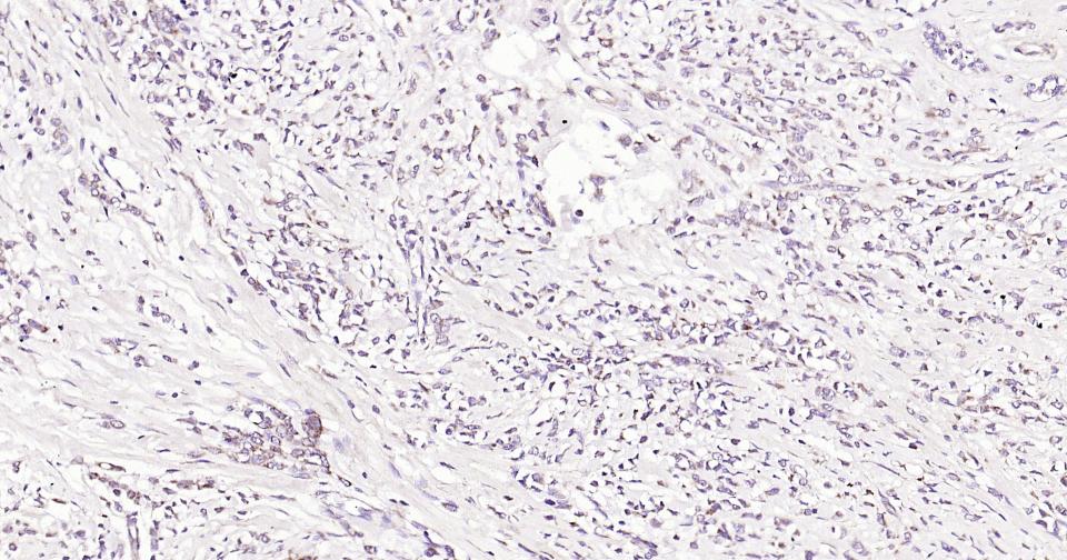 Paraformaldehyde-fixed, paraffin embedded Human Gastric Cancer; Antigen retrieval by boiling in sodium citrate buffer (pH6.0) for 15 min; Antibody incubation with Bak Monoclonal Antibody, Unconjugated(bsm-61174R) at 1:200 overnight at 4°C, followed by conjugation to the SP Kit  (Rabbit, SP-0023)  and DAB (C-0010) staining.