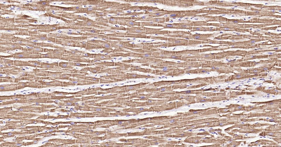 Paraformaldehyde-fixed, paraffin embedded Rat Heart; Antigen retrieval by boiling in sodium citrate buffer (pH6.0) for 15 min; Antibody incubation with HSP60 Monoclonal Antibody, Unconjugated(bsm-61183R) at 1:200 overnight at 4°C, followed by conjugation to the SP Kit (Rabbit, SP-0023)and DAB (C-0010) staining.