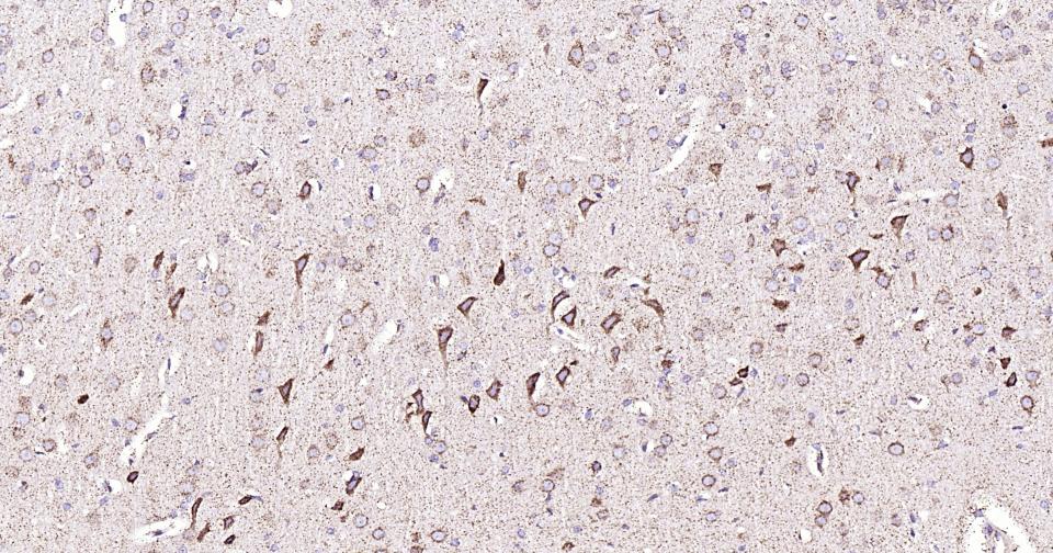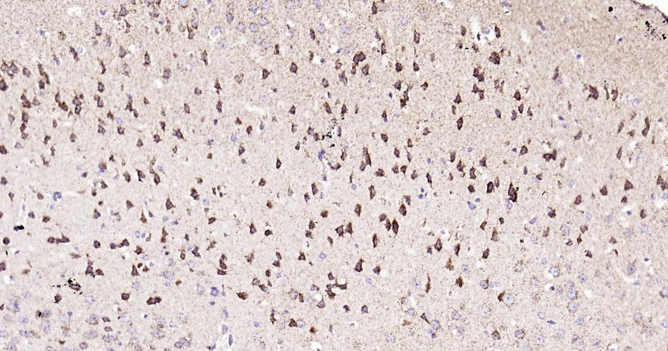 Paraformaldehyde-fixed, paraffin embedded Rat Cerebrum; Antigen retrieval by boiling in sodium citrate buffer (pH6.0) for 15 min; Antibody incubation with HSP60 Monoclonal Antibody, Unconjugated(bsm-61183R) at 1:200 overnight at 4°C, followed by conjugation to the SP Kit (Rabbit, SP-0023)and DAB (C-0010) staining.