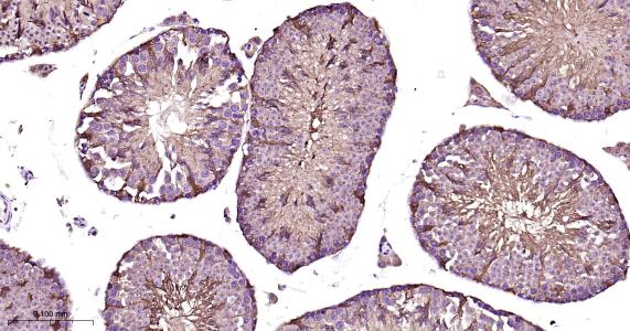 Paraformaldehyde-fixed, paraffin embedded Rat Testicles; Antigen retrieval by boiling in sodium citrate buffer (pH6.0) for 15 min; Antibody incubation with PBP Monoclonal Antibody, Unconjugated(bsm-61243R) at 1:200 overnight at 4°C, followed by conjugation to the bs-0295G-HRP and DAB (C-0010) staining.