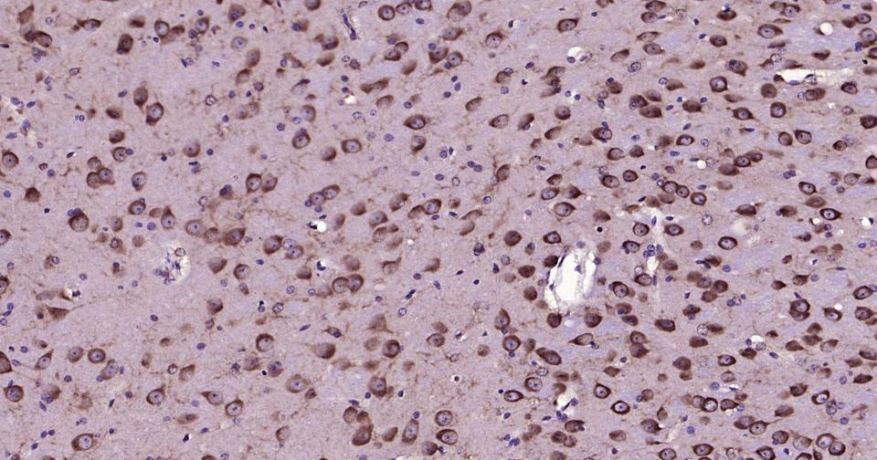 Paraformaldehyde-fixed, paraffin embedded Rat Cerebrum; Antigen retrieval by boiling in sodium citrate buffer (pH6.0) for 15 min; Antibody incubation with MSI2?Monoclonal Antibody, Unconjugated(bsm-61244R) at 1:200 overnight at 4°C, followed by conjugation to the bs-0295G-HRP and DAB (C-0010) staining.