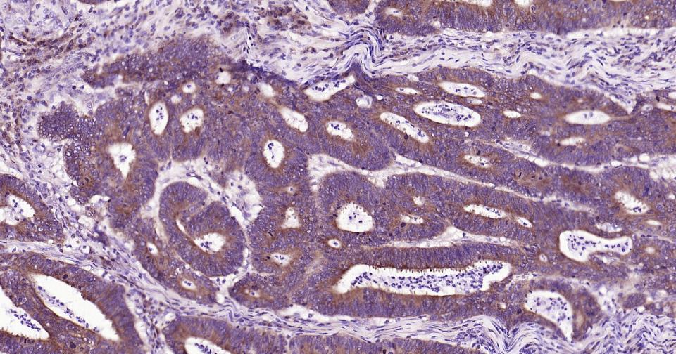Paraformaldehyde-fixed, paraffin embedded Human Colon Cancer; Antigen retrieval by boiling in sodium citrate buffer (pH6.0) for 15 min; Antibody incubation with MSI2?Monoclonal Antibody, Unconjugated(bsm-61244R) at 1:200 overnight at 4°C, followed by conjugation to the bs-0295G-HRP and DAB (C-0010) staining.
