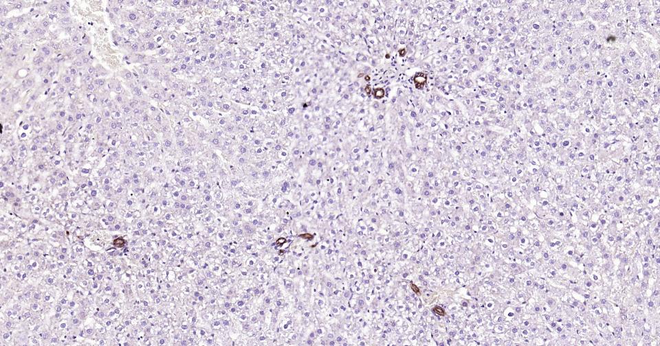 Paraformaldehyde-fixed, paraffin embedded Human Liver; Antigen retrieval by boiling in sodium citrate buffer (pH6.0) for 15 min; Antibody incubation with MSI2?Monoclonal Antibody, Unconjugated(bsm-61244R) at 1:200 overnight at 4°C, followed by conjugation to the bs-0295G-HRP and DAB (C-0010) staining.