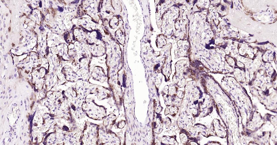 Paraformaldehyde-fixed, paraffin embedded Human Placenta; Antigen retrieval by boiling in sodium citrate buffer (pH6.0) for 15 min; Antibody incubation with MSI2?Monoclonal Antibody, Unconjugated(bsm-61244R) at 1:200 overnight at 4°C, followed by conjugation to the bs-0295G-HRP and DAB (C-0010) staining.
