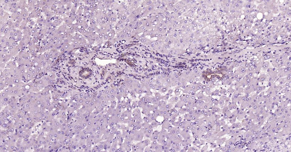 Paraformaldehyde-fixed, paraffin embedded Rat Liver; Antigen retrieval by boiling in sodium citrate buffer (pH6.0) for 15 min; Antibody incubation with MSI2?Monoclonal Antibody, Unconjugated(bsm-61244R) at 1:200 overnight at 4°C, followed by conjugation to the bs-0295G-HRP and DAB (C-0010) staining.