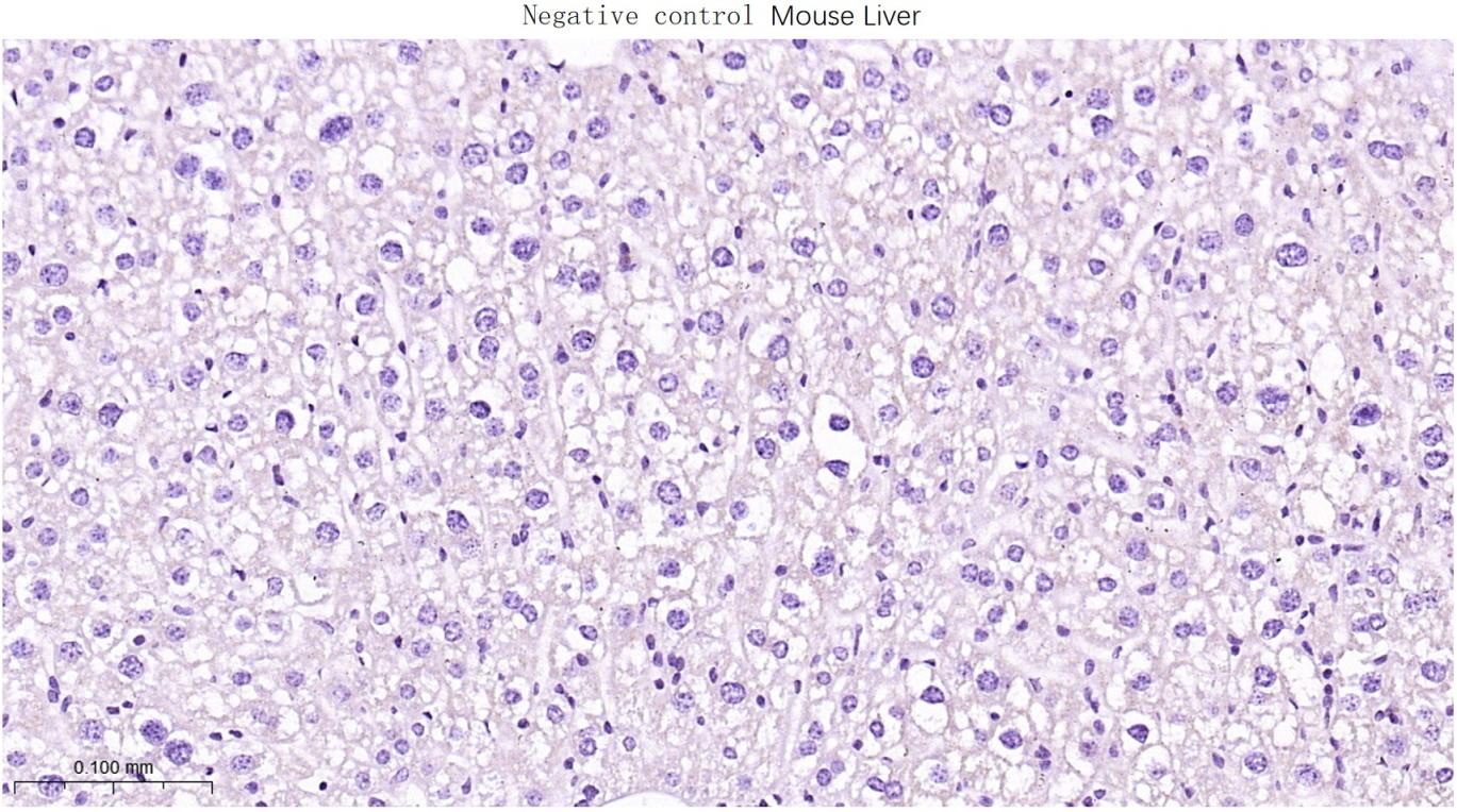 (Negative control) Paraformaldehyde-fixed, paraffin embedded Mouse Liver; Antigen retrieval by boiling in sodium citrate buffer (pH6.0) for 15 min; Antibody incubation with Myoglobin Monoclonal Antibody, Unconjugated(bsm-61245R) at 1:200 overnight at 4°C, followed by conjugation to the bs-0295G-HRP and DAB (C-0010) staining.