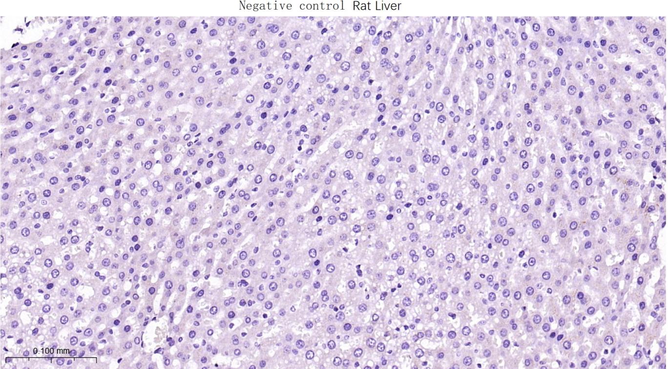 (Negative control) Paraformaldehyde-fixed, paraffin embedded Rat Liver; Antigen retrieval by boiling in sodium citrate buffer (pH6.0) for 15 min; Antibody incubation with Myoglobin Monoclonal Antibody, Unconjugated(bsm-61245R) at 1:200 overnight at 4°C, followed by conjugation to the bs-0295G-HRP and DAB (C-0010) staining.