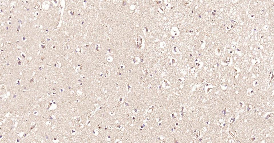 Paraformaldehyde-fixed, paraffin embedded Human Cerebrum; Antigen retrieval by boiling in sodium citrate buffer (pH6.0) for 15 min; Antibody incubation with SCF Monoclonal Antibody, Unconjugated(bsm-61250R) at 1:200 overnight at 4°C, followed by conjugation to the SP Kit (Rabbit, SP-0023) and DAB (C-0010) staining.