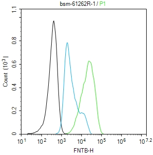 The HepG2 (H) cells were fixed with 4% PFA (10 min at r.t.) and then permeabilized with 90% ice-cold methanol for 20 min at -20℃,the cells then were incubated in 5%BSA to block non-specific protein-protein interactions (30 min at r.t.).Primary Antibody (green):Rabbit Anti-FNTB antibody (bsm-61262R,1:100); Secondary Antibody (white blue): Goat anti-Rabbit IgG-BF488 (bs-60295G-BF488): 1 μg/test. Blank control (black): PBS. Acquisition of 20,000 events was performed.