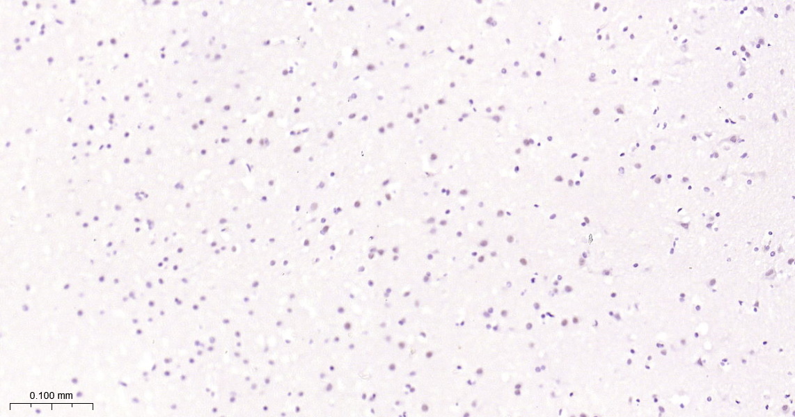 Paraformaldehyde-fixed, paraffin embedded Human Cerebrum; Antigen retrieval by boiling in sodium citrate buffer (pH6.0) for 15 min; Antibody incubation hnRNP C1/C2 Monoclonal Antibody, Unconjugated(bsm-61267R) at 1:200 overnight at 4°C, followed by conjugation to the bs-0295G-HRP and DAB (C-0010) staining.
