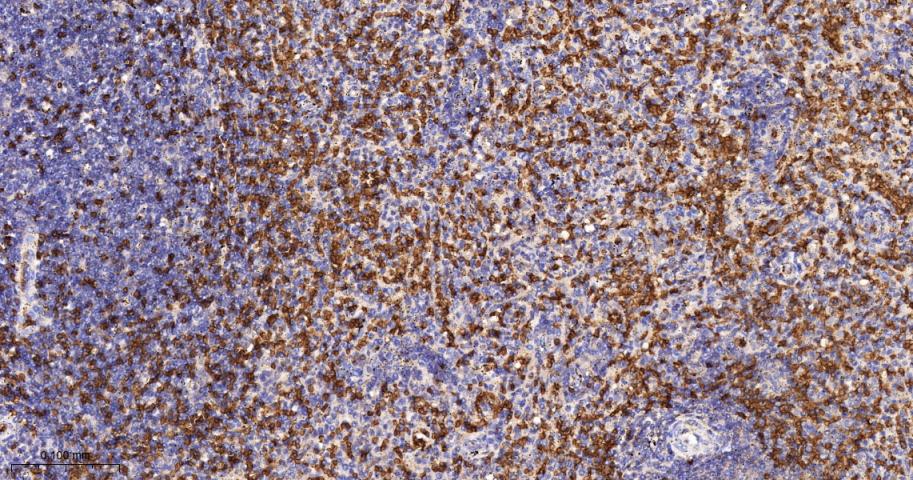Paraformaldehyde-fixed, paraffin embedded Human Spleen; Antigen retrieval by boiling in sodium citrate buffer (pH6.0) for 15 min; The section was incubated with Glycophorin C/CD236 Monoclonal Antibody, Unconjugated (bsm-61751R) at 1:200 overnight at 4°C, followed by conjugation to the bs-0295G-HRP and DAB (C-0010) staining.