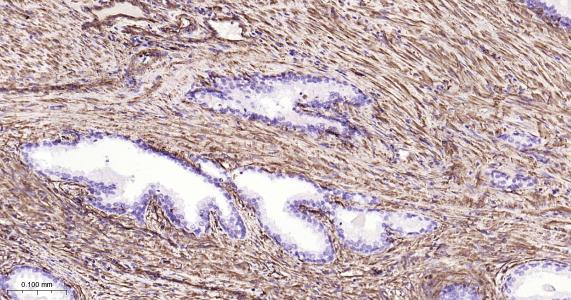 Paraformaldehyde-fixed, paraffin embedded Human Prostate; Antigen retrieval by boiling in sodium citrate buffer (pH6.0) for 15 min; Antibody incubation with CRMP2 Monoclonal Antibody, Unconjugated(bsm-61800R) at 1:200 overnight at 4°C, followed by conjugation to the bs-0295G-HRP and DAB (C-0010) staining.