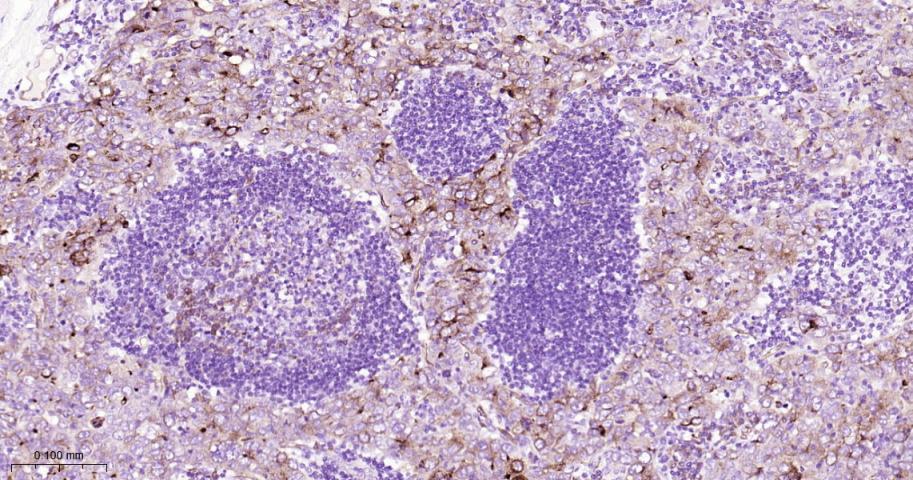 Paraformaldehyde-fixed, paraffin embedded Human Esophageal Cancer; Antigen retrieval by boiling in sodium citrate buffer (pH6.0) for 15 min; The section was incubated with PODXL Monoclonal Antibody, Unconjugated (bsm-61807R) at 1:200 overnight at 4°C, followed by conjugation to the bs-0295G-HRP and DAB (C-0010) staining.