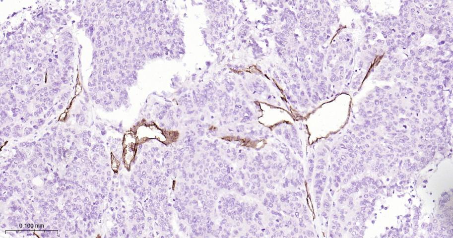Paraformaldehyde-fixed, paraffin embedded Human Uterine body cancer; Antigen retrieval by boiling in sodium citrate buffer (pH6.0) for 15 min; The section was incubated with PODXL Monoclonal Antibody, Unconjugated (bsm-61807R) at 1:200 overnight at 4°C, followed by conjugation to the bs-0295G-HRP and DAB (C-0010) staining.
