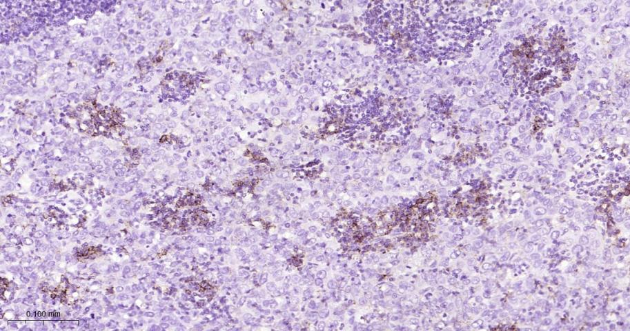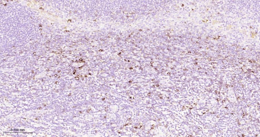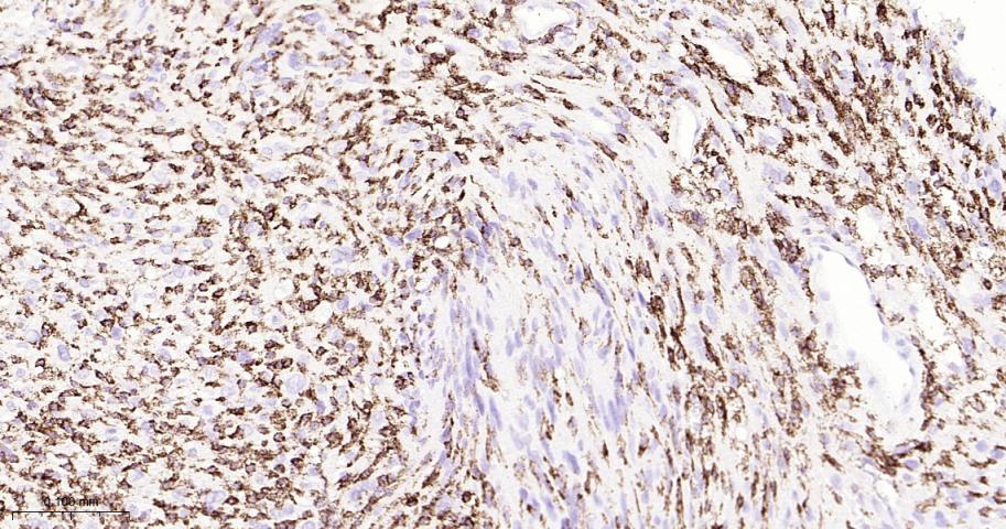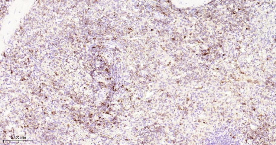 Paraformaldehyde-fixed, paraffin embedded Human Spleen; Antigen retrieval by boiling in sodium citrate buffer (pH6.0) for 15 min; Antibody incubation with PSGL-1/CD162 Monoclonal Antibody, Unconjugated(bsm-61840R) at 1:200 overnight at 4°C, followed by conjugation to the bs-0295G-HRP and DAB (C-0010) staining.