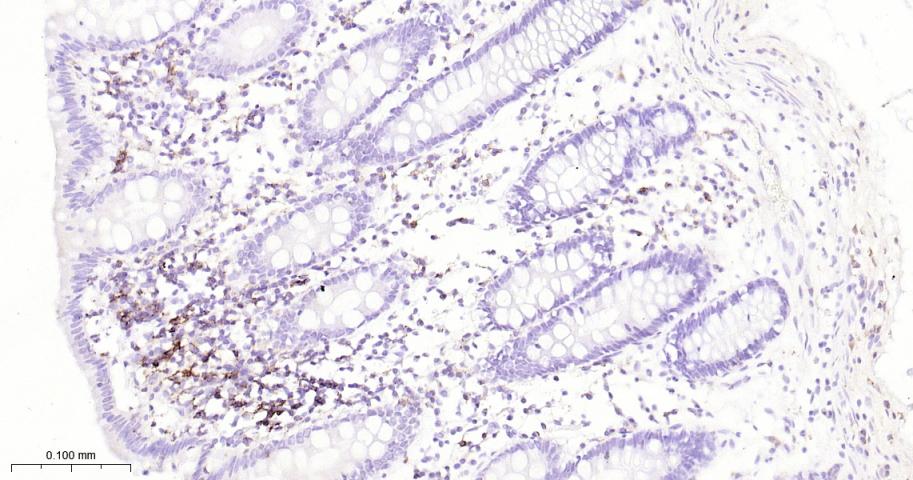 Paraformaldehyde-fixed, paraffin embedded Human Colon; Antigen retrieval by boiling in sodium citrate buffer (pH6.0) for 15 min; Antibody incubation with PSGL-1/CD162 Monoclonal Antibody, Unconjugated(bsm-61840R) at 1:200 overnight at 4°C, followed by conjugation to the bs-0295G-HRP and DAB (C-0010) staining.