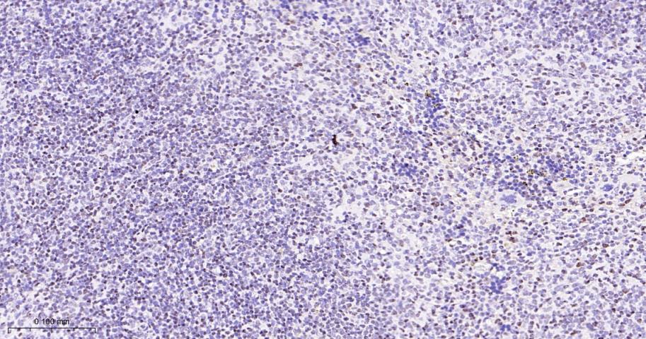 Paraformaldehyde-fixed, paraffin embedded Rat Spleen; Antigen retrieval by boiling in sodium citrate buffer (pH6.0) for 15 min; The section was incubated with SF3B1 Monoclonal Antibody, Unconjugated (bsm-61871R) at 1:200 overnight at 4°C, followed by conjugation to the bs-0295G-HRP and DAB (C-0010) staining.