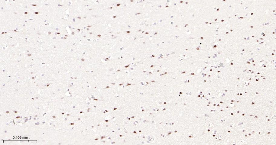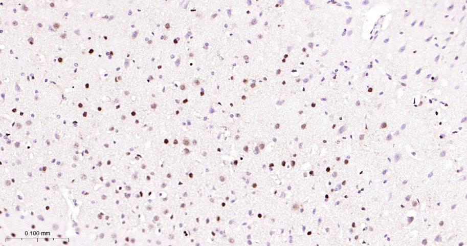 Paraformaldehyde-fixed, paraffin embedded Rat Cerebrum; Antigen retrieval by boiling in sodium citrate buffer (pH6.0) for 15 min; The section was incubated with SF3B1 Monoclonal Antibody, Unconjugated (bsm-61871R) at 1:200 overnight at 4°C, followed by conjugation to the bs-0295G-HRP and DAB (C-0010) staining.