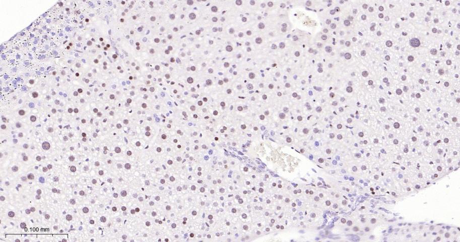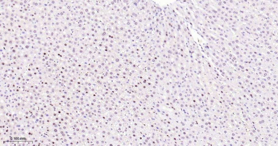 Paraformaldehyde-fixed, paraffin embedded Mouse Liver; Antigen retrieval by boiling in sodium citrate buffer (pH6.0) for 15 min; The section was incubated with SF3B1 Monoclonal Antibody, Unconjugated (bsm-61871R) at 1:200 overnight at 4°C, followed by conjugation to the bs-0295G-HRP and DAB (C-0010) staining.