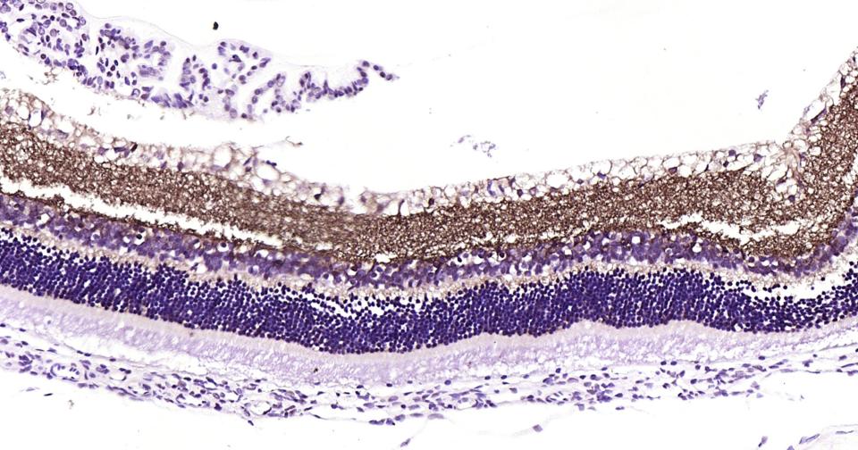 Paraformaldehyde-fixed, paraffin embedded Rat Eye; Antigen retrieval by boiling in sodium citrate buffer (pH6.0) for 15 min; Antibody incubation with GAT1?Monoclonal Antibody, Unconjugated(bsm-61879R) at 1:200 overnight at 4°C, followed by conjugation to the bs-0295G-HRP and DAB (C-0010) staining.