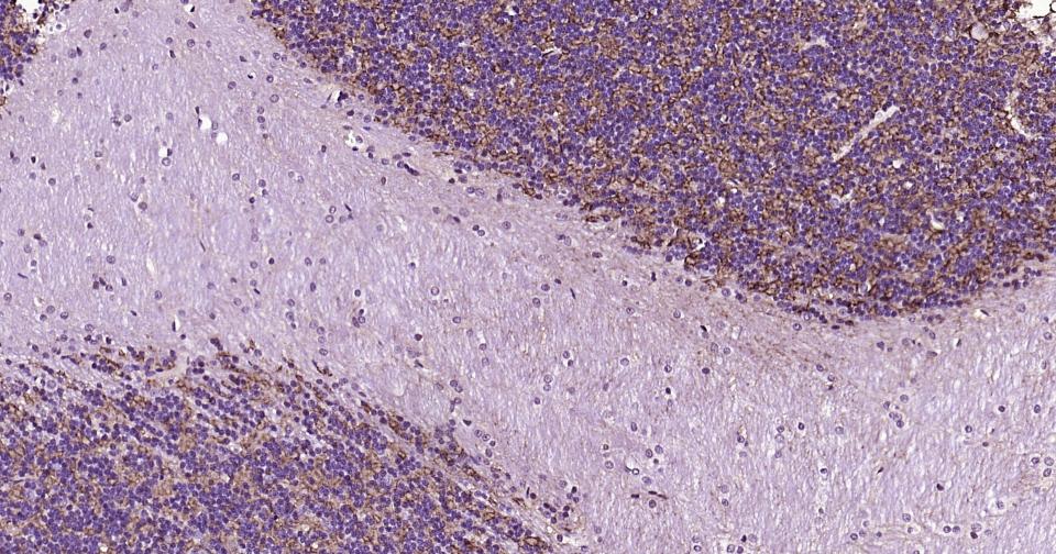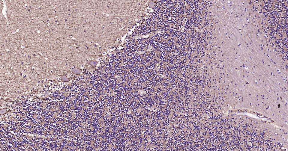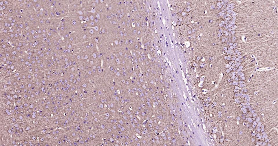 Paraformaldehyde-fixed, paraffin embedded Rat Cerebellum; Antigen retrieval by boiling in sodium citrate buffer (pH6.0) for 15 min; Antibody incubation with GAT1?Monoclonal Antibody, Unconjugated(bsm-61879R) at 1:200 overnight at 4°C, followed by conjugation to the bs-0295G-HRP and DAB (C-0010) staining.