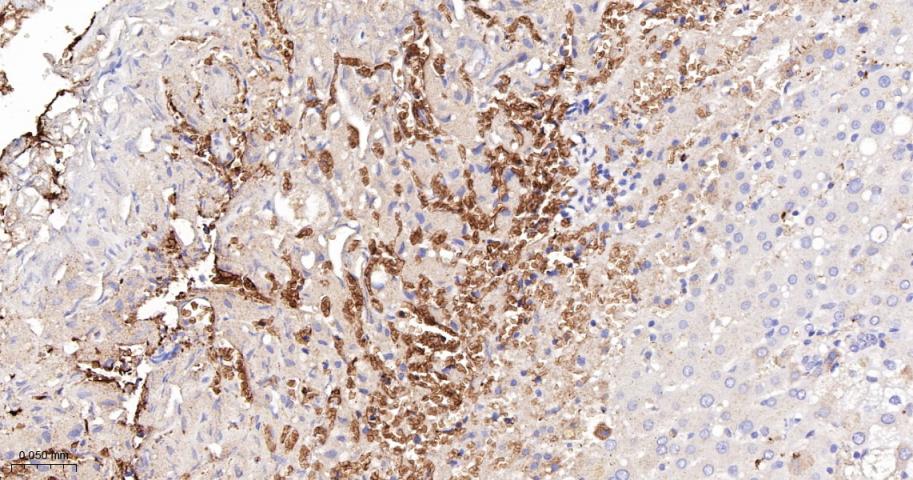 Paraformaldehyde-fixed, paraffin embedded Human Liver; Antigen retrieval by boiling in sodium citrate buffer (pH6.0) for 15 min; The section was incubated with Band3 Monoclonal Antibody, Unconjugated (bsm-61887R) at 1:200 overnight at 4°C, followed by conjugation to the bs-0295G-HRP and DAB (C-0010) staining.