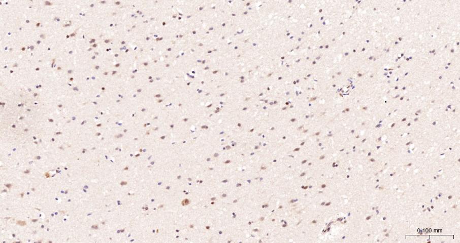 Paraformaldehyde-fixed, paraffin embedded Human Cerebrum; Antigen retrieval by boiling in sodium citrate buffer (pH6.0) for 15 min; The section was incubated with HIF1AN?Monoclonal Antibody, Unconjugated (bsm-61905R) at 1:200 overnight at 4°C, followed by conjugation to the bs-0295G-HRP and DAB (C-0010) staining.